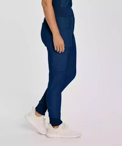 These women’s mid-rise jogger scrub pants feature a stretchy rib-knit waistband with an internal drawstring for a clean look with an adjustable fit. Soft, comfortable rib-knit leg cuffs and hidden rib-knit panels down the inseam of the pant legs allows for ample freedom of movement. Our modern tailored fit flatters your shape, while our moisture-wicking super stretch fabric provides the comfort and flexibility your work requires throughout the day. Seven pockets, including a secure zip cargo pocket keep your essentials within easy reach.