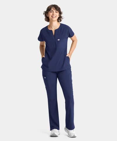 Dolman style mandarin neck top, DTM bungee loop at shoulder hem, One chest patch pocket, two front seam pockets, back yoke & inverted pleat, shirt tail hem, side vents